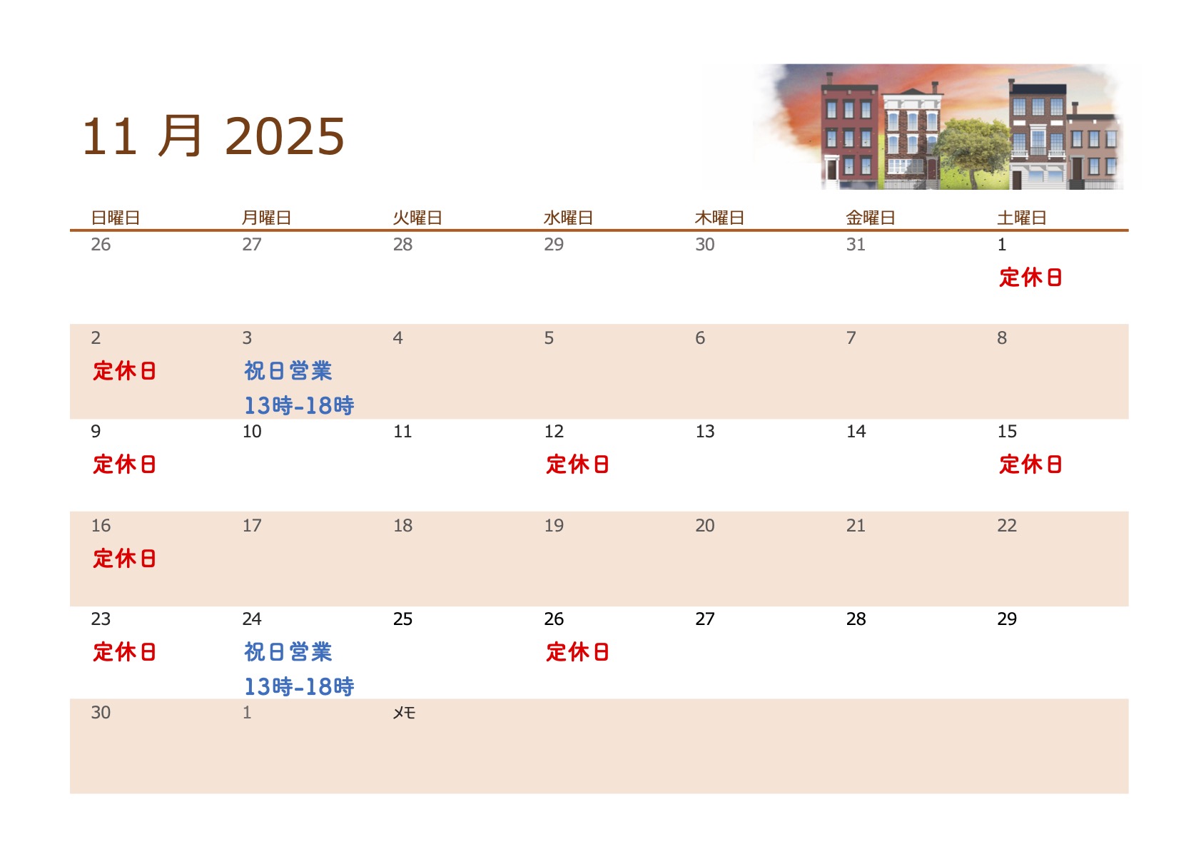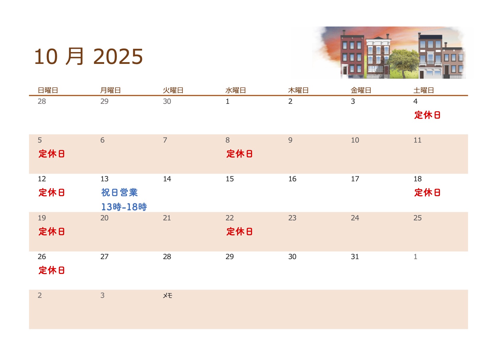 10・11月の定休日について 2025年10月・11月分の定休日情報を更新いたしました。ご来店の際はお気をつけてお越しください(予約不要) 定休日カレンダー<2025年10月>定休日カレンダー<2025年11月>
